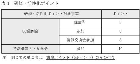 年度末に研修・活性化ポイント(表1参照)を集計し、自己研鑚に励まれた優秀会員を表彰し、副賞を差し上げるなどについては変更ありません。