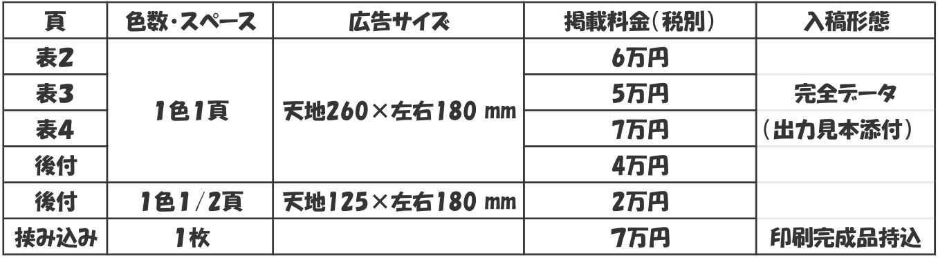 (広告掲載1頁につき講演要旨集1冊を謹呈します)